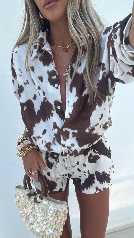 Texas Cow Print Shorts Co-Ord